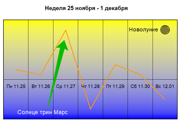 ГОРОСКОП ЗДОРОВЬЯ на НЕДЕЛЮ 25 НОЯБРЯ – 1 ДЕКАБРЯ Внимание В прогнозе даются советы и рекомендации связанные только с консервативным лечением. Не с хирургией и тому подобными активными вмешательствами в дела организма. На это и следует ориентироваться в борьбе за здоровье. До Новолуния 1 декабря старайтесь избавляться от вредных привычек, больше внимания уделяйте борьбе с хроническими заболеваниями, мониторьте организм на предмет скрытых заболеваний. После 1 числа Растущая Луна способствует началу нового месячного цикла оздоровления, началу новых диет, испробованию новых лекарств, упражнений, методик укрепления здоровья. Первую половину 25 ноября Луна в Деве. Внимание на систему строительства тела. В основном в средней его части и в основном с точки зрения хронических заболеваний. Старайтесь придерживаться диет, умеренности и рекомендаций врачей, связанных с питанием, физиотерапией и режимом дня. Массажируйте натощак живот, активируйте упражнениями его мышцы, делайте бандхи из йоги. Пр