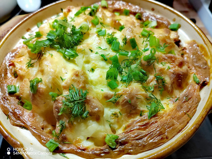 Предлагаю рецепт вкусной запеканки из цветной капусты. Подходит как гарнир в любое время суток. Нам понадобится: ✔ Цветная капуста - 800 г; Для заливки: ✔ Сметана - 2-3 столовые ложки; ✔ Сыр - 60 г;, ✔ Яйцо - 1 штука; ✔ Соль, чеснок, зелень - по вкусу. Цветную капусту разделяем на соцветия. Сыр трём на мелкой тёрке. Заливку смешиваем до однородной массы, добавляем любимые специи (у меня соль и чеснок). Капусту выкладываем в форму для запекания и заливаем заливкой. Выпекаем при 170 градусах 35 минут, или до румяной корочки. Готовую запеканку посыпаем сверху зеленью. КБЖУ на 100 г - 92/4,6/6,4/3,8. Рецепт на странице Автор рецепта – Лилия Телешова Расчёт КБЖУ сделан с помощью Telegram-чат-бота https://t.me/vesipitaniebot © Почтенный возраст Online и Рецепты для диабетиков