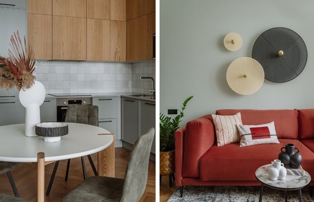 Работая над проектами, дизайнеры воплощают чужие идеи. Но здесь все иначе: Ирина Виневская создала интерьер для себя, объединив функциональность и красоту Дизайнер Ирина Виневская создала интерьер мечты в двухкомнатной квартире 56 м². Несмотря на скромные размеры, жилье получилось просторным и практичным, а каждый элемент интерьера подобран так, чтобы подчеркнуть индивидуальность хозяйки. Особое внимание уделено эргономике и качеству материалов. Мы собрали 6 идей, которые вы можете использовать для своего дома: вдохновляйтесь и повторяйте! Для небольшой квартиры особенно важно правильно организовать пространство. Дизайнер объединила кухню и гостиную, создав единую зону для общения и отдыха. При этом кухня располагается в нише, что визуально отделяет ее от зоны отдыха, не перегружая пространство. Подход позволяет избавиться от лишних перегородок и создать ощущение свободы. Реализовать это у себя дома можно, отказавшись от жестких границ между кухней и гостиной, используя единое напольно