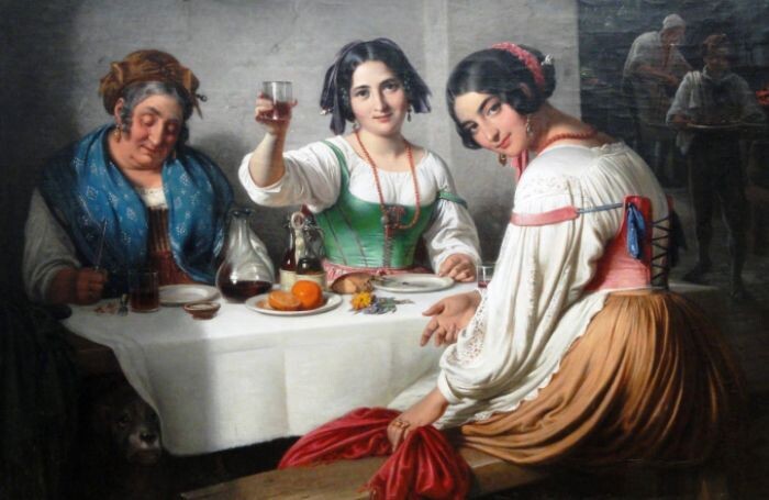 Фото с сайтов: репродукция картины Вильгельма Марстранда «Итальянская остерия», histrf.ru, artblart.com