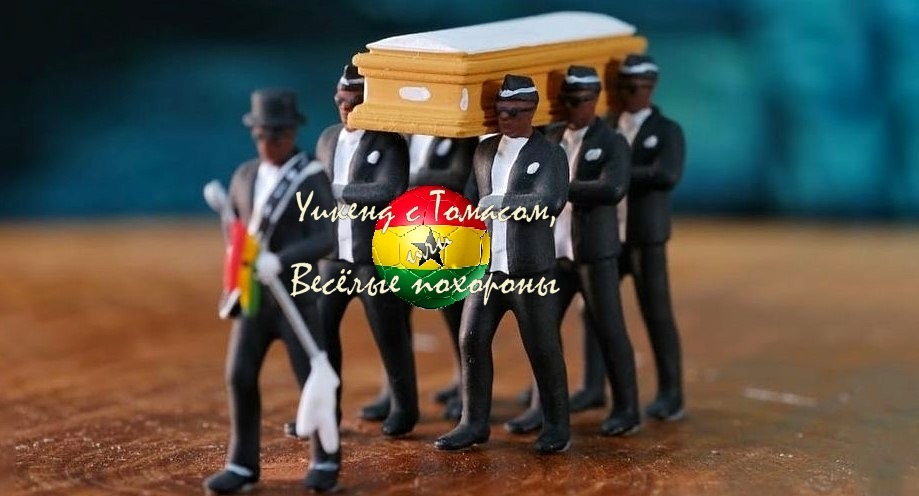 Кстати, в последние годы широкую известность на церемонии похорон в Гане, некоторых других странах Африки и даже на юге США получили т.н. «танцующие гробовщики» (носильщики гробов), которые избрали очень своеобразный подход к исполнению похоронного обряда и выступают в ходе него с хореографическими номерами с элементами эквилибристики. В моем рассказе об этом ничего не будет. Ну не видел я ничего подобного тогда на тех похоронах. И это очень даже хорошо. В противном случае от определенного культурного шока я бы отходил довольно долго.
