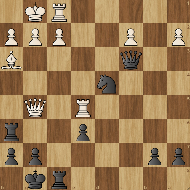 4. Q:g3 - Ke2! Черные кидают вилку на ферзя и короля белых, поэтому королю нужно отступать.
