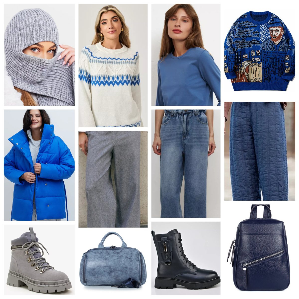 Вчера было немаркое, глубокое и очень классическое. Сегодня в противовес ему яркое. Специально взяла куртку цвета электрик или не проходите мимо. А поскольку с утра повалил снег, я увлеклась не городской темой, а темой зимней поездки. Каникулы впереди, надо быть готовой к приключениям. Поэтому в капсуле рюкзак и сумка. Всё кожа. Важное в рюкзак, сменку в сумку и на поезд. Рюкзак на прогулки - это удобно. Недавно взяла той же фирмы что и рюкзак в капсуле сумку, очень довольна. У них хорошая кожа и прекрасное исполнение. У нас три варианта брюк, по теплее, средние и джинсы. Все интересное. Есть что поразглядывать. У джинс и брюк милая резиночка. Не совсем классические модели. А уж брюки бохо, в двух вариантах, что я добавила, вообще привлекут внимание. Они кстати ещё и утеплённые, сделаны из крапивы. Очень интересно померить такое. На высоких должно быть хорошо, на остальных надо проверять. Верх у нас белый, голубой и синий. Лонг, если что его можно и под свитер и отдельно. Сви