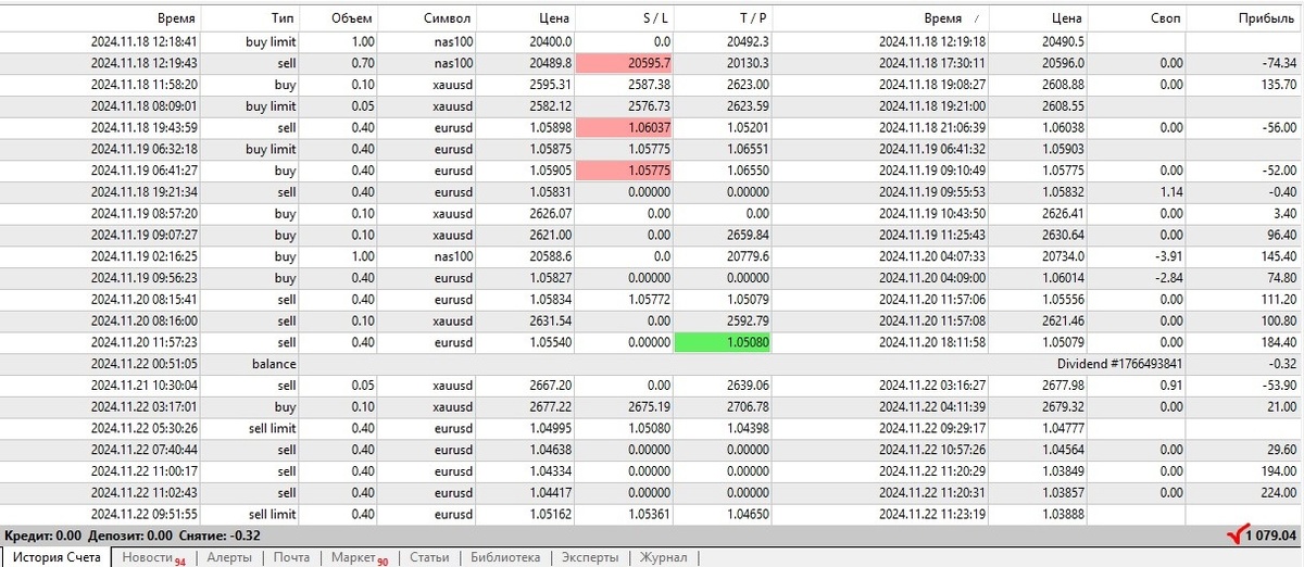 Прибыль за неделю +$1079, что составляет чуть больше 5% и это очень хороший результат.
