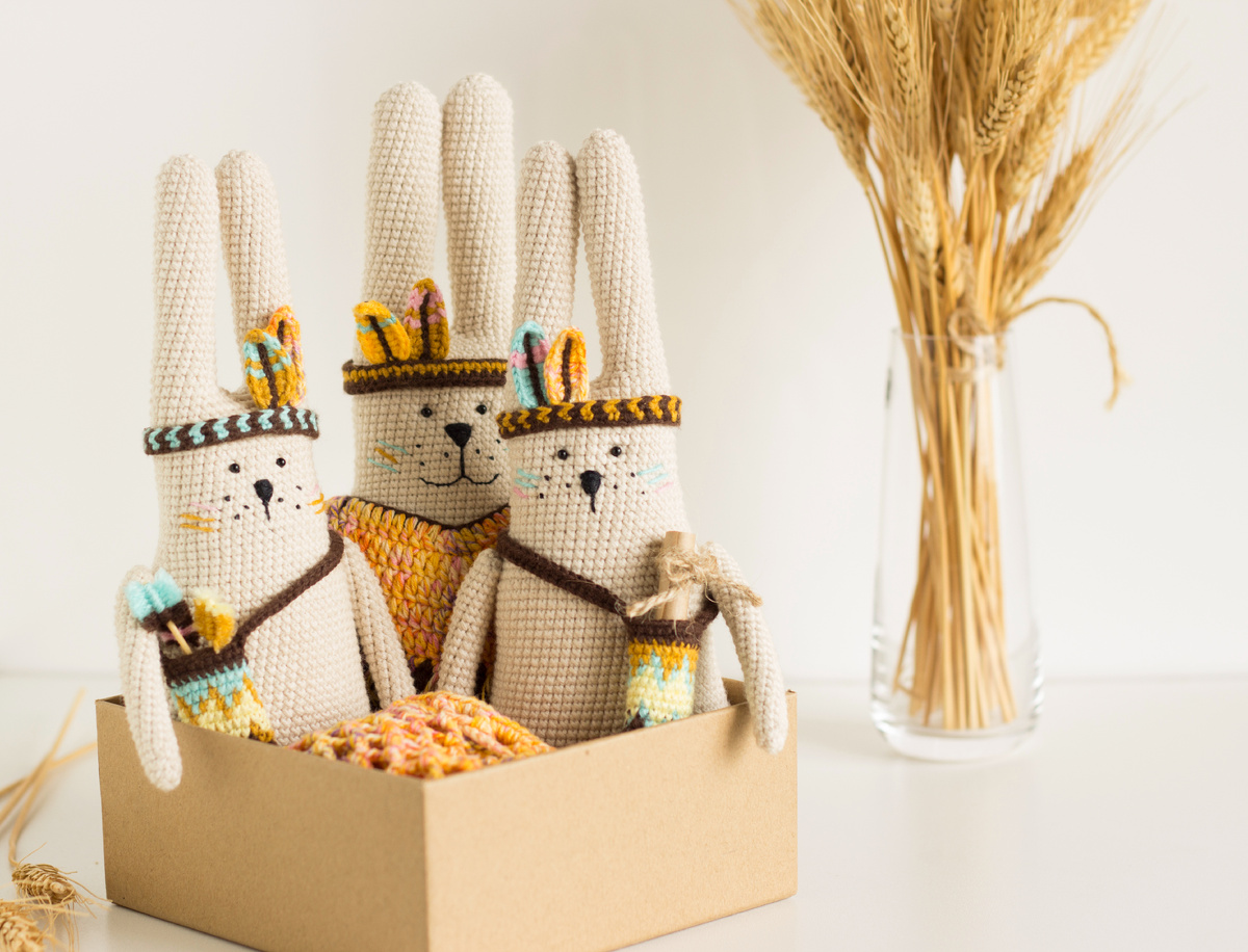 На этом мы с вами закончили вязать зайчика-индейца крючком. Не оставляйте его в одиночестве, создайте ему компанию таких же симпатяжек:)