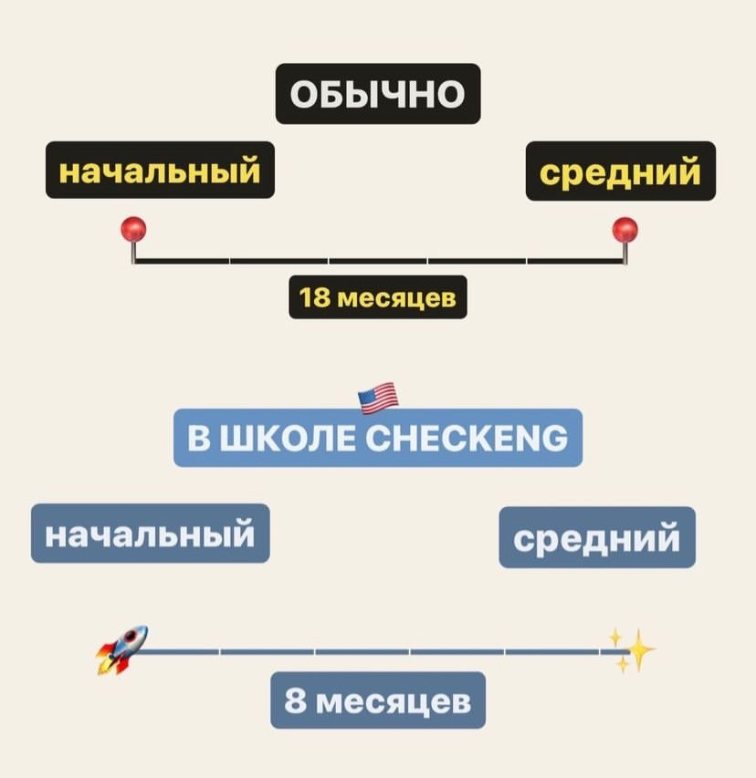 🔤 НОВИЧКАМ! 🔤 💡 Как вы думаете, сколько английских слов нужно знать, чтобы понимать других и поддерживать базовые темы (я, семья, хобби и т.д.)? Большинство считает, что нужно знать 1000 слов. Но на самом деле, на уровне А1 достаточно всего 500 слов. А поверьте, в наше время вы, вероятно, знаете уже 50-100 английских слов, таких как: Mum, dad, house, dog, cringe, money… А также слова, как «коворкинг», «вайб», «мем» — Невозможно не знать ни одного английского слова! 😃 🎯 Это значит, что ваша задача облегчается на 100 слов: выучите оставшиеся 400, и вы уже сможете разговаривать и понимать английскую речь! Звучит как план? Согласны? 📚 🗣️ 400 слов в активном запасе — это примерно 3-4 месяца обучения в нашей школе, так как каждый модуль мы учим от 20 актуальных терминов. Ученики CheckEng, которые раньше не учили язык или забыли его, начинают говорить уже на втором занятии! Например, Ксюша пришла к нам с нулевыми знаниями и сейчас рассказывает истории на английском. ✨ 📈 В среднем