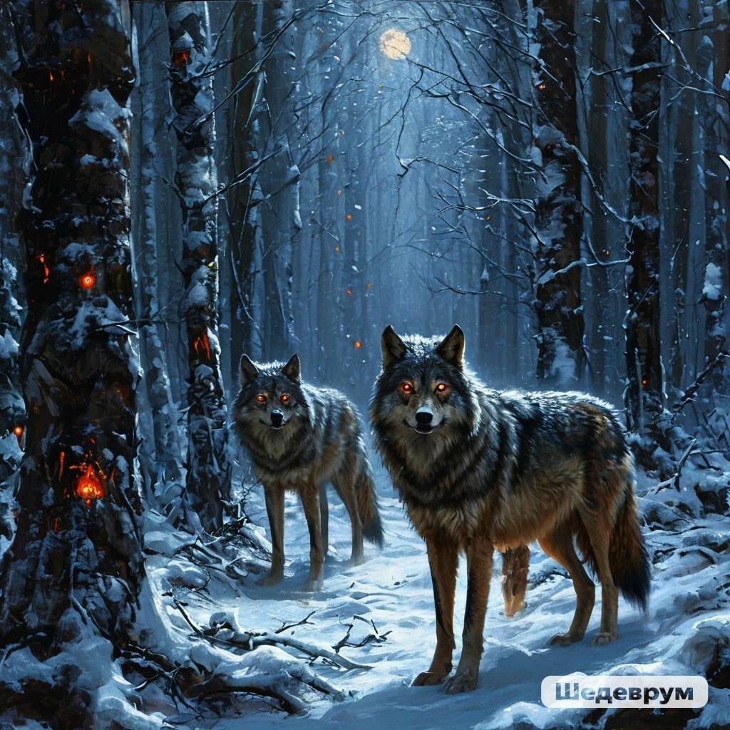 Ко мне подбирались три высоких поджарых волка, щеря оскаленные пасти. Не менее жутко смотрелись их горящие глаза.