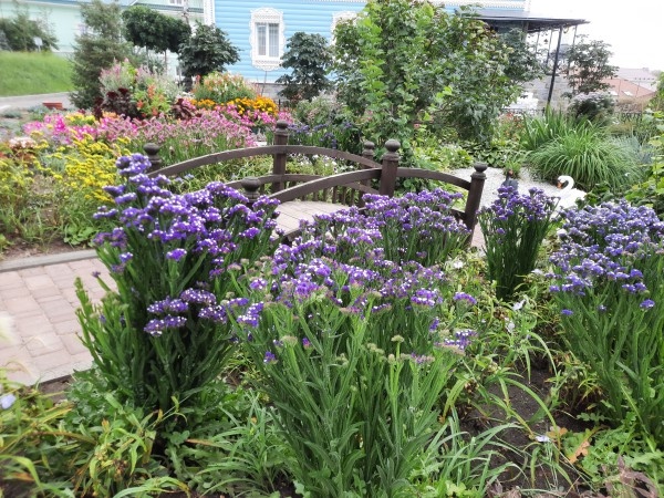 Самое интересное, что статицу, или кермек выемчатый, редко применяют в ландшафтном дизайне. Если вы наберете "кермек в цветниках" или что-то в этом роде, то получите фотографии с другими видами кермека, но только не яркие статицы. Почему - загадка.