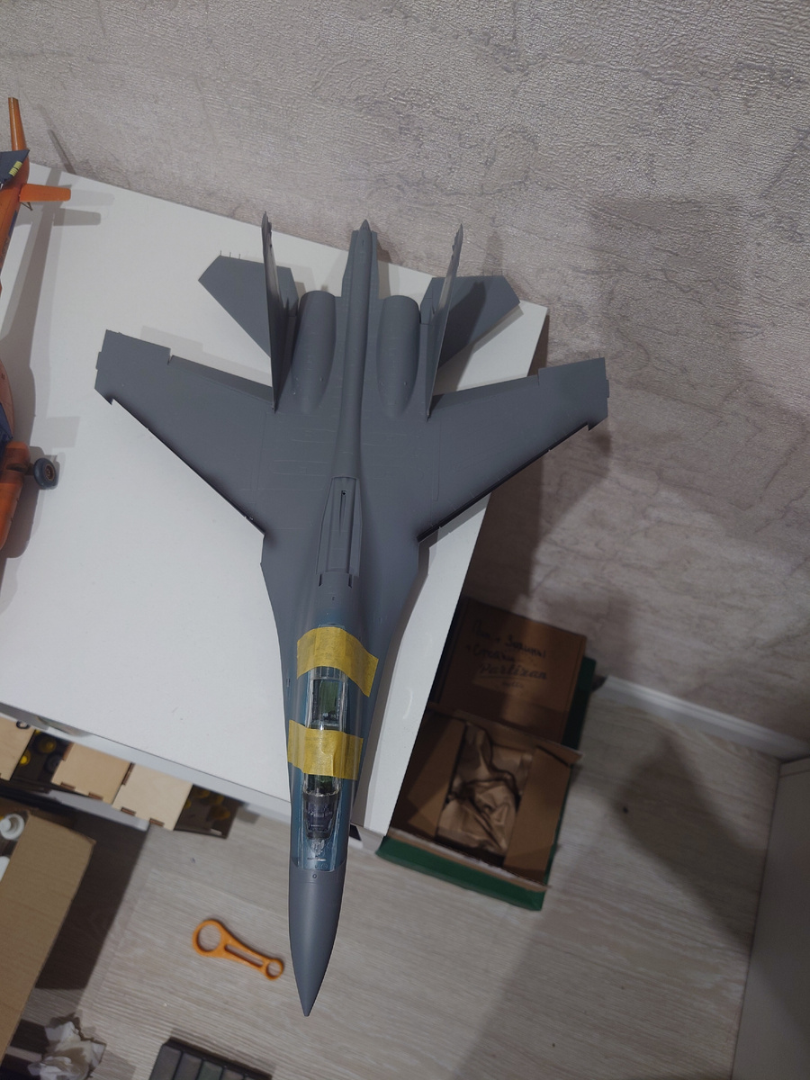 Итак продолжим стройку Су-27УБ от GWH. В рамках пробы, покрасил кили, краской АКАН, результат очень понравился, вообще честно, можно смело назвать АКАН открытием года для меня! Краска шикарная! Отлично дуется, прекрасно ложится, не забивает аэр (6я серия).