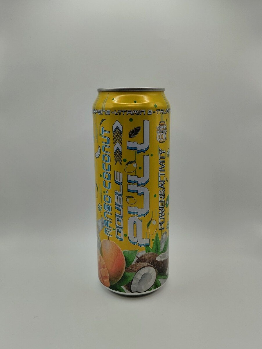 🎬Обзор🎬 Double Pull 🥭Манго Кокос🥥 Хороший энергетик для людей не готовых тратить по сотке и выше каждый раз. Справился ли наш дешёвый вариант в этот раз с таким УНИКАЛЬНЫМ вкусом?👇 Куплен – К&Б Цена – 48₽ Объём – 450 мл Кофеин – 29/100 Таурин – 260/100 Сахар – 3г/100 Подсластители✔️ Он яркий! И всё... Выглядит как-будто это термоусадка, а не принт. Баночка яркая, но эта PNGшная вставочка кокоса и манго внизу ужасно смотрится. Лаганое лого, мини цветочки, листики, манго и кокосики (почему-то зелёные), полосы, цвет, всё выглядит круто, кроме пнг картинки. Яркий и резкий запах манго, с неприятным манговским послевкусием. Кокос даёт свой маслянистый аромат в конце. Приятный пинаколадный вкус, но несладкий, по сахару поскупились, очень пусто чувствуется. Манго, кокос, всё есть и первое конечно ярче во вкусе, всё в самых главных канонах. Но главное – наличие подсластителей ощущается только в лёгком размыливание вкуса, но сами по себе они нк ощущаются. Яркий жёлтый цвет, схож с дешёвы