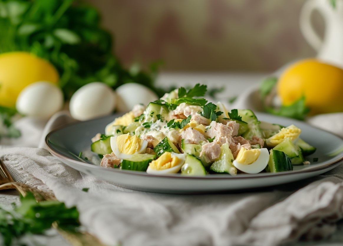 Салат с консервированным тунцом — это простое и вкусное блюдо, которое идеально подходит как для легкого обеда, так и для праздничного стола. Его можно приготовить быстро из доступных ингредиентов, которые обычно всегда под рукой. Консервированный тунец (в собственном соку или в масле) — 2 банки (около 200 г каждая) Яйца — 4 шт. Огурец свежий — 2 средних Зеленый лук — 3-4 пера (по желанию) Майонез — 2-3 ст. л. Соль, перец — по вкусу Лимонный сок — 1 ст. л. (по желанию) Приготовление салата занимает около 20 минут. Салат с консервированным тунцом готов. Приятного аппетита! Подписывайтесь на канал "Вкусно Очень"