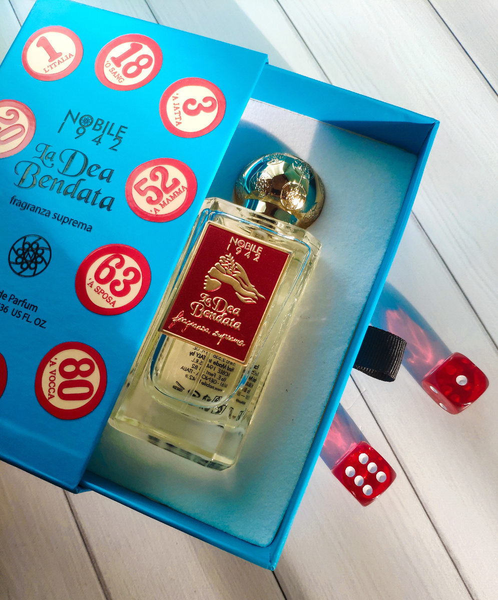 Госпожа Удача стала третьим ароматом в полной суеверий и символизма линейке I Rituali. И если первые два, густые, дымные, смолистые Anti Malocchio и A'Grazia, очевидно осенне-зимние композиции, то с La Dea Bendata надо разбираться. Женское лицо с завязанными глазами, изображённое на флаконе, намекает нам на то, что удача, как правило, слепа. Но у всегда радостных итальянцев Nobile 1942 она ещё и развратна, и весела, и непредсказуема, и достаточно сильно пьяна. На старте нас встречает терпкое сладкое вино, оставшееся на дне бокала, которое позже выветривается в не менее вкусный то ли виноград "Дамские пальчики", то ли виноградный сок, причём весьма натуральный сок, без химии и консервантов. А дальше начинаются вопросики. Урожай винограда, равно как и многих других ягод, мы собираем в конце лета и осенью. А после осени, и это знают даже дети, наступает зима. Но вот в La Dea Bendata сразу после сбора винограда распускаются весенние цветы. Скромные ландыши звучат нежно и ностальгично, во
