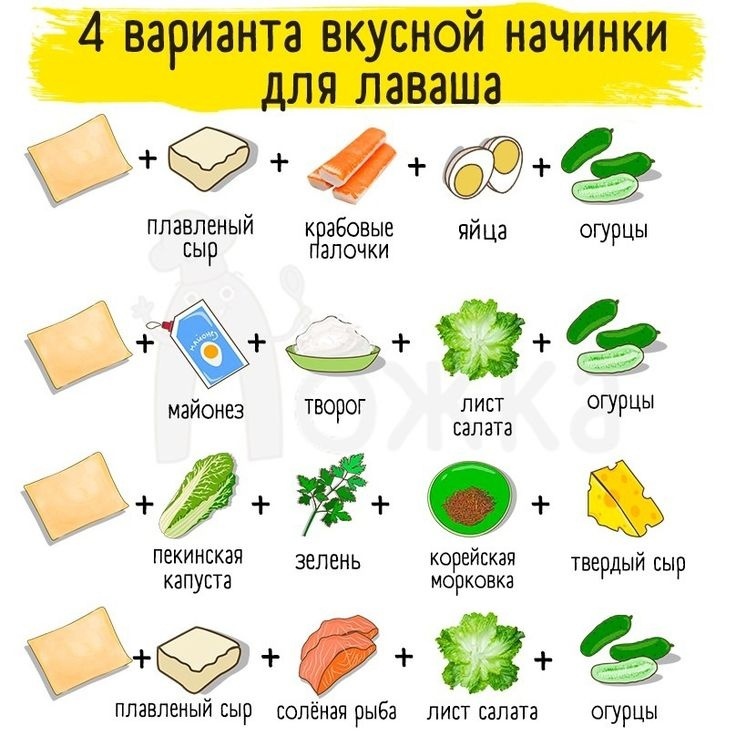 Раньше у меня всегда в холодильнике стояло разведенное тесто для блинов. Сейчас эту нишу заняли лаваши. Изумительный продукт. Долго хранятся, никогда не лишние. Их можно есть с начинкой, можно вместо хлеба. Начинка бывает сладкая, бывает мясная. На самом деле в лаваш можно завернуть все, что угодно. Вот из открытых источников. Я бы сказала, что обязательным является сыр, он слепляет слои. Остальное набираем по желанию и наличию. Сыр и хрустящая корочка так усиливает вкус, что все становиться деликатесом. Сегодня готовим завтрак. Нам понадобится: Шаг 1. Порежем половину луковицы и засыпем 1 чайной ложкой сахара. Оставим мариноваться на 30 минут. Шаг 2. Пожарим 100 г рыбного фарша. Немного остудим и смешаем с 1-2 столовыми ложками рыбных консервов в масле. Примечание. Добавление ложки консервов делает обычный рыбный фарш изысканной начинкой. Это первая начинка. Порежем на тонкие ломтики сыр и маринованные огурцы. Нарежем ветчину на слайсы. Это вторая начинка. Шаг 4. Собираем конверти