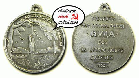 «Орден Иуды» был изготовлен в единственном экземпляре в 1709 году по приказу царя Петра І для «награждения» гетмана Мазепы «Орден Иуды» представлял собой массивный круг весом пять килограммов из серебра высшей пробы. На круге был изображён Иуда Искариот, повесившийся на осине, внизу – изображение тридцати сребреников и надпись: «Треклят сын погибельный Иуда еже ли за сребролюбие давится» Имя Иуды Искариота стало нарицательным для обозначения предательства. По легенде, за предательство Иисуса Христа Иуде заплатили тридцать сребреников (сравнимо со стоимостью раба в то время), которые также часто используются как символ награды предателя. Пётр I предполагал вручить этот орден гетману Мазепе вместо ордена Андрея Первозванного после того, как гетман перешёл на сторону шведского короля Карла ХІІ. …Пётр был, как нынче бы сказали, необычайно креативен. Остроумец, панк. Царь русский.