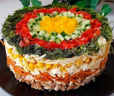 С приближением праздников каждая хозяйка старается найти рецепты, чтобы приготовить что-то новое на праздничный стол. Большой популярностью пользуются салаты. Чаще всего, это салаты с куриным филе. Такие салаты получаются очень вкусными. Рецептов много и выбрать можно любой. Я тоже хочу вам предложить салат с куриным филе под названием Яркая фантазия. Этот красочный салат получается и вкусным и красивым. Он отлично дополнит любой праздничный стол.