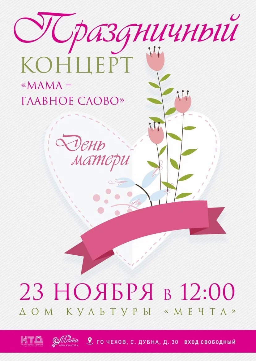 Приглашаем Вас на уникальный концерт, посвященный Дню матери в г.о. Чехов