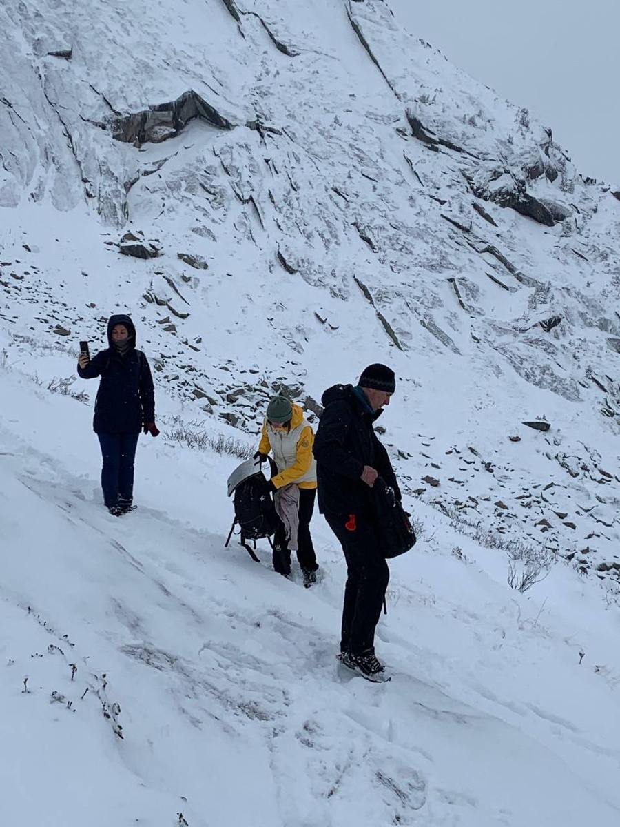Но первой остановкой была смотровая площадка рядом с противолавинной галереей. Артём назвал её полкой и сказал что она самая большая в России. Честно, я не проверяла, добавить нечего.
