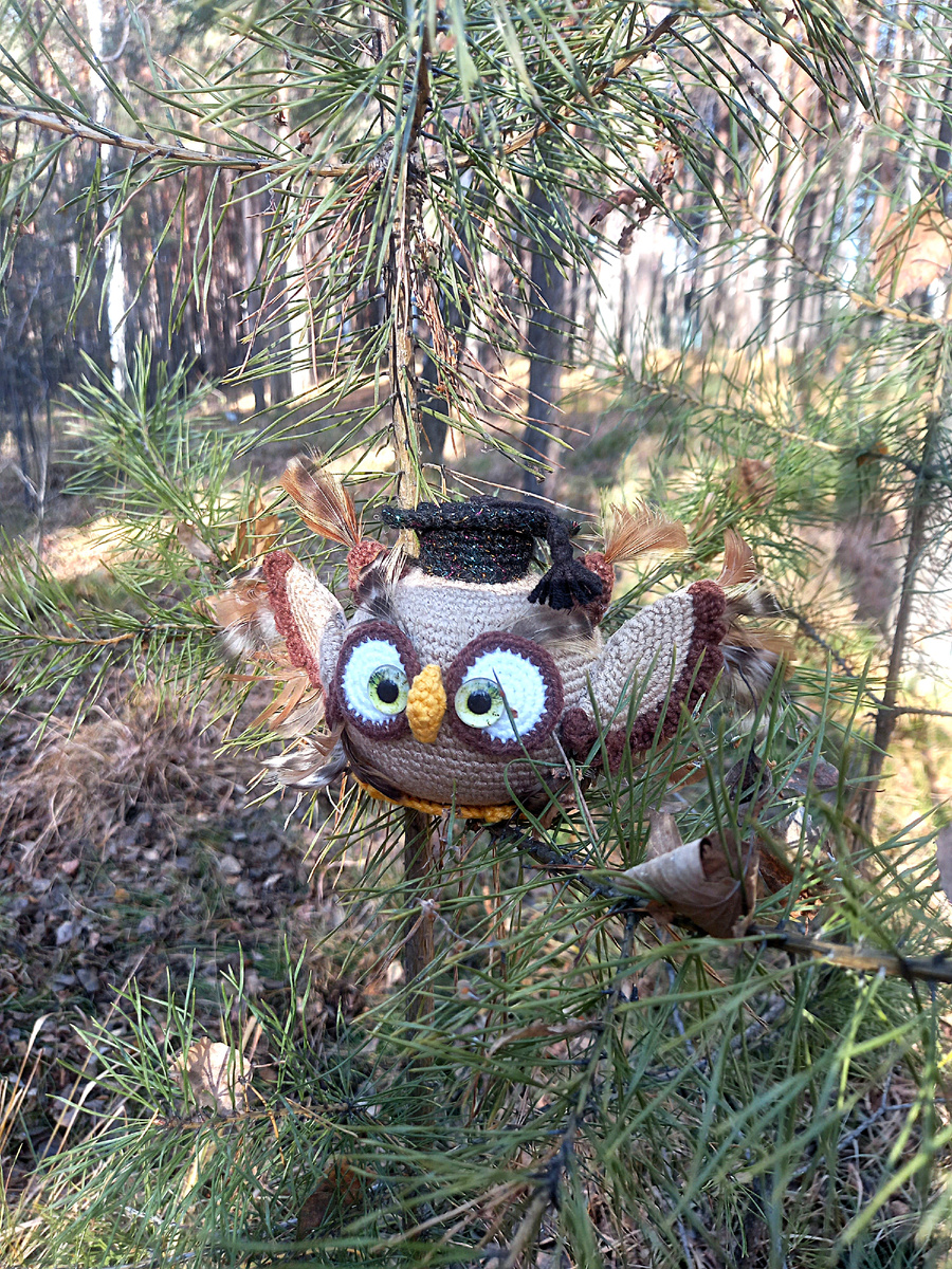 Давно планировала связать совушку, и вот наконец-то мой проект воплотился в жизнь, но просто связать свою героиню из пряжи мне показалось скучновато, поэтому я решилась объединить пряжу и перья. Вот именно ради этого эксперимента мне пришлось устроить стрижку моих курочек! И теперь моя совушка стала намного выразительней и интересней. Меня настолько захватил этот процесс, что я даже устроила фотосессию для неё в осеннем лесу. Теперь она обладает красивым оперением, имеет свой пенёчек с брусничником и опятами и будет украшать мой рукодельный уголок! Частично использовала МК Oli Crochet и Татьяны Юровской