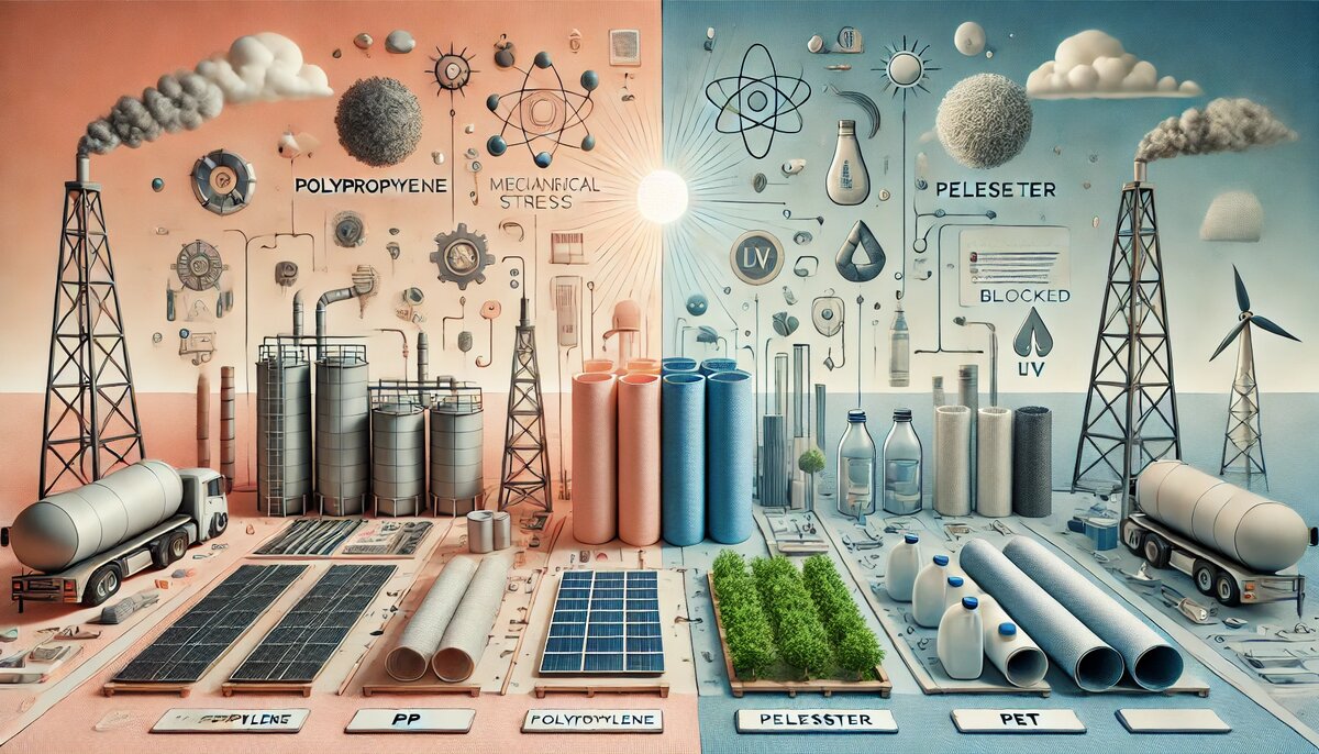 Нетканый геотекстиль из полипропилена (PP) и полиэфира (PET) широко используются в строительстве, гидротехнических сооружениях и на полигонах ТБО. Однако их эксплуатационные характеристики существенно различаются, что делает выбор материала важным этапом проектирования. В этой статье мы рассмотрим ключевые отличия между PP и PET геотекстилем, а также их влияние на долговечность и функциональность в разных условиях.
