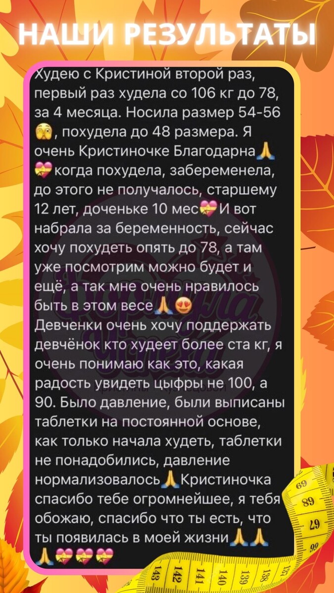 Этот конец года — настоящий марафон: работа, приятные хлопоты дома, тренировки детей и развитие в бизнесе. Всё смешалось в одну большую волну, но я стараюсь идти вперёд, насколько это возможно. 🙏🏽❤️ В целом всё просто супер! Курс похудения «ФОРМУЛА УСПЕХА» радует, работает, удивляет и вдохновляет. 💖