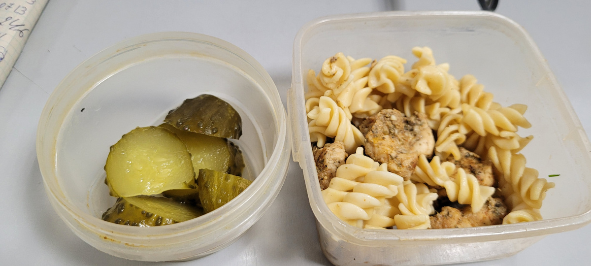 Утром быстренько приготовила себе еду на работу. Записала на листочек, а на работе подсчитала. На завтрак, который был в 7 часов утра - каша -отрубяша. Как всегда с льняным маслом и смесью семечек. В счетчике она у меня уже подсчитана, поэтому легко заносить. А так как после завтрака мы сразу поехали в бассейн, то бутерброды не стала есть. На работу приехала к 10 часам. Уже наступило время перекуса. 100 г вчерашних блинчиков и мои мармеладки. Еще банан на 100 грамм без шкурки. На обед я приготовила макароны из цельнозерновой муки в сухом виде 50 грамм. И 80 грамм индейки. В этот раз индейку мариновала в соевом соусе и она получилось вкусной. И кусочки мягкие. Из такой индейки хорошо делать салаты. И вместо салата ( не было времени приготовить) взяла маринованные огурцы. На полдник творожок Простоквашино 170 грамм. После работы вышла раньше на две остановки. И с удовольствием прогулялась. Вечером есть не хотелось. Но положила на тарелку 70 г скумбрии и 80 грамм овощей. Так же не