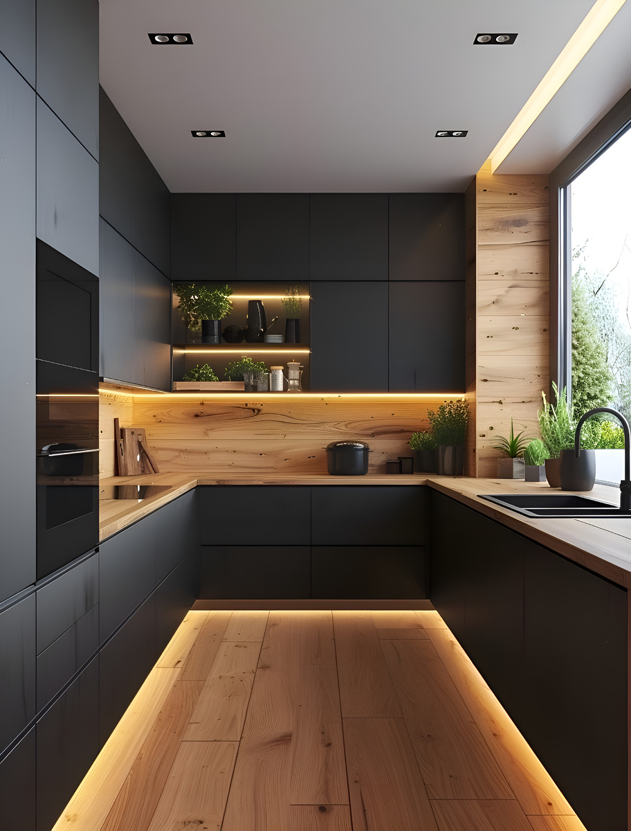 Начнем с планировки. Г-образная кухня — один из самых популярных и удобных вариантов. При наличии достаточной площади стоит задуматься об острове, который дополнит вашу кухню, а параллельная кухня может стать отличным решением для более длинных и узких помещений. Фасады и их материалы