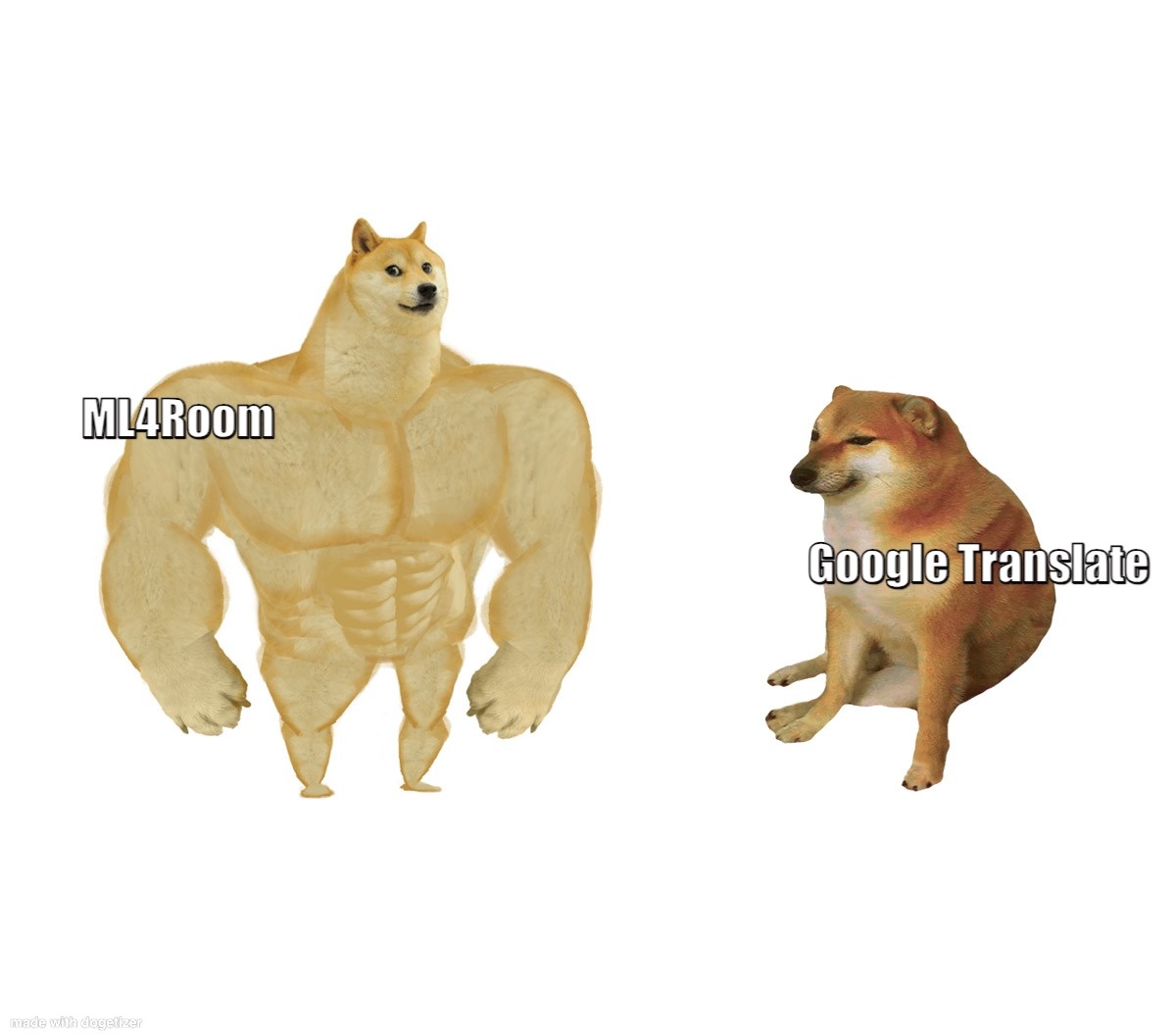 Всем привет! На связи команда ML4Room, и, кажется, самое время нам рассказать, кто мы такие. Мы — это небольшая российская технологическая компания, специализирующаяся на разработке и внедрении инновационных языковых и речевых решений для различных отраслей. Наша миссия — преодолевать языковые барьеры и повышать эффективность бизнеса с помощью передовых технологий. Вы, конечно, спросите, а что насчет Google Translate, Yandex Переводчика или DeepL? Мы уверены, что в мире всегда есть место чему-то новому, да и конкуренция всегда приводит к развитию! В самом деле, никто же не удивляется количеству брендов телефонов или машин? Однако почему все-таки мы этим занялись? Если кратко, потому что в нашей команде есть лингвист, которую до глубины души раздражает качество текущих решений на рынке. И вообще, не нравится — предлагай! Также, давайте признаем, качество перевода для таких языков, как китайский, казахский, армянский даже у упомянутых гигантов оставляет желать лучшего, а DeepL вообще не