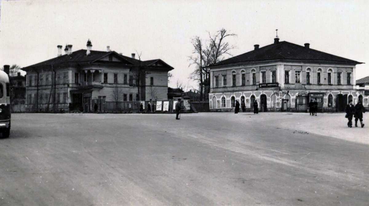 На снимке 1950-х, пожалуй, главный перекрёсток Вологды, где встречаются 4 улицы. Как место выглядит сейчас, смотрим на втором снимке.