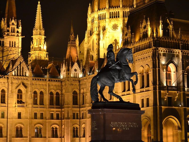 Рядом с освещенным зданием парламента, еще более торжественным в вечернем свете, мы остановимся, чтобы оценить всю его грандиозность. Далее выйдем на площадь Героев и прогуляемся по городской роще Варошлигет, где находится живописный замок Вайдахуняд.
