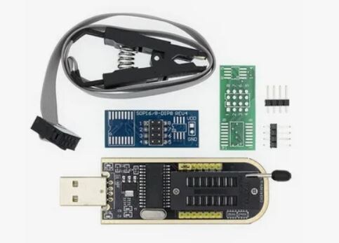 Комплектация. В стандартный набор входят сам программатор, переходники для работы с различными типами микросхем и иногда адаптер для работы с SOIC8 (микросхемы с 8 ножками).