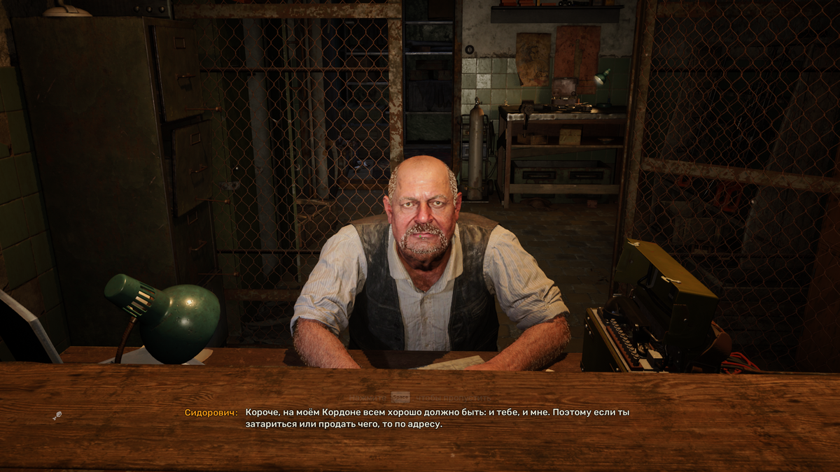 Ты бы ещё консервных банок насобирал! Правда теперь на украинском языке, да и актер озвучки не тот... Харизмы того самого Сидоровича увы нет. Однако в принципе сам Сидорович и его берлога вполне себе схожа с той, что была показана в оригинальной трилогии. Разве что подвал явно стал больше по размеру Но зато курочку Сидор исправно потребляет. А я между тем рассматриваю на полке сзади него бинокль - пуская скупую мужскую слезу, ведь в игре бинокля у меня нет. Ладно. Пора на свежий воздух Вот она родненькая! Деревня новичков. Чисто технически всё на месте. Костёр присутствует, сталкеры травят анекдоты и брямкают на гитарке, а вот Волк зашел в обустроенный дом погреться у камина Где рассказывает зелёному новичку о былых деньках, снова сводя мои олд скулы. Сложно просто так взять и не осмотреть тут всё более детально. Так что погнали немного по домам пробежимся. Тут рядом я встретил очередную аномалию зоны - Сталкер трансформер Любой уважающий себя сталкер первым делом вспомнит про комбез н