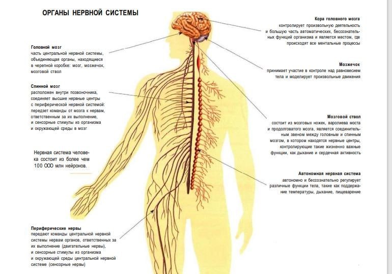⭐️‼️Центральная нервная система состоит из органов, расположенных внутри черепа (мозга, мозжечка, мозгового ствола) и позвоночника (спинной мозг); отвечает за интерпретацию состояния и различных потребностей организма на основе полученной информации, чтобы затем генерировать команды, предназначенные для получения целесообразных ответов. ⭐️‼️Периферическая нервная система состоит из множества нервов, которые идут к головному мозгу (мозговые пары) и спинному мозгу (позвоночные нервы); действует как передатчик стимулов мозгу и команд от мозга к органам, ответственным за их выполнение. ⭐️‼️Автономная нервная система контролирует функции многочисленных органов и тканей через антагонистические эффекты: 📌👁- симпатическая система активируется во время тревоги, 📌👁- парасимпатическая — в состоянии покоя. ⭐️‼️Вегетативная нервная система, отвечающая за деятельность внутренних органов. ⚠️Её центры расположены в стволовой части мозга, а потому сознательно она никак не регулируется. ⭐️‼️