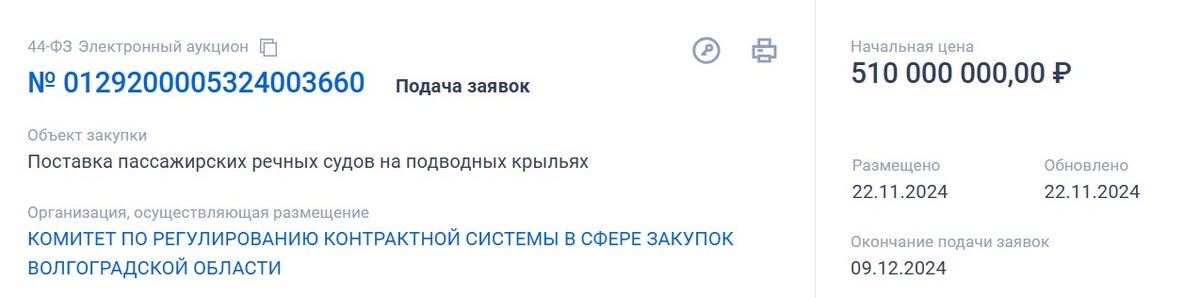 Администрация Волгоградской области закупает четыре судна на подводных крыльях «Валдай 45Р». Условия закупки с начальной ценой 510 миллионов рублей опубликованы на портале госзакупок. Пассажирские речные суда на подводных крыльях «Валдай 45Р» в стране производит единственный завод, нижегородское АО«Центральное Конструкторское бюро по судам на подводных крыльях им. Р.Е.Алексеева». Покупку оплатят из средств регионального бюджета. О возрождении речного пассажирского транспорта на Волге и на Дону в этом году немало говорили в Госдуме и правительстве. В частности, спикер Госдумы Вячеслав Володин анонсировал появление речного маршрута, который свяжет Волгоград и Саратов, уже в 2025 году. Развивать речное судоходство планируют с помощью отечественного речного транспорта. Именно такой решили закупить для Волгограда.