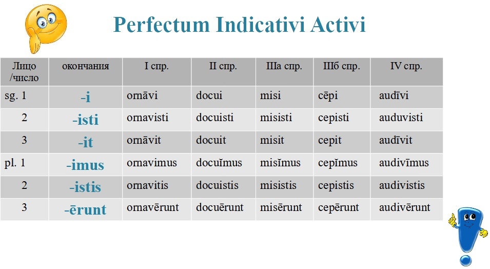 Perfectum Indicativi Activi. Прошедшее время совершенного вида действительного залога
