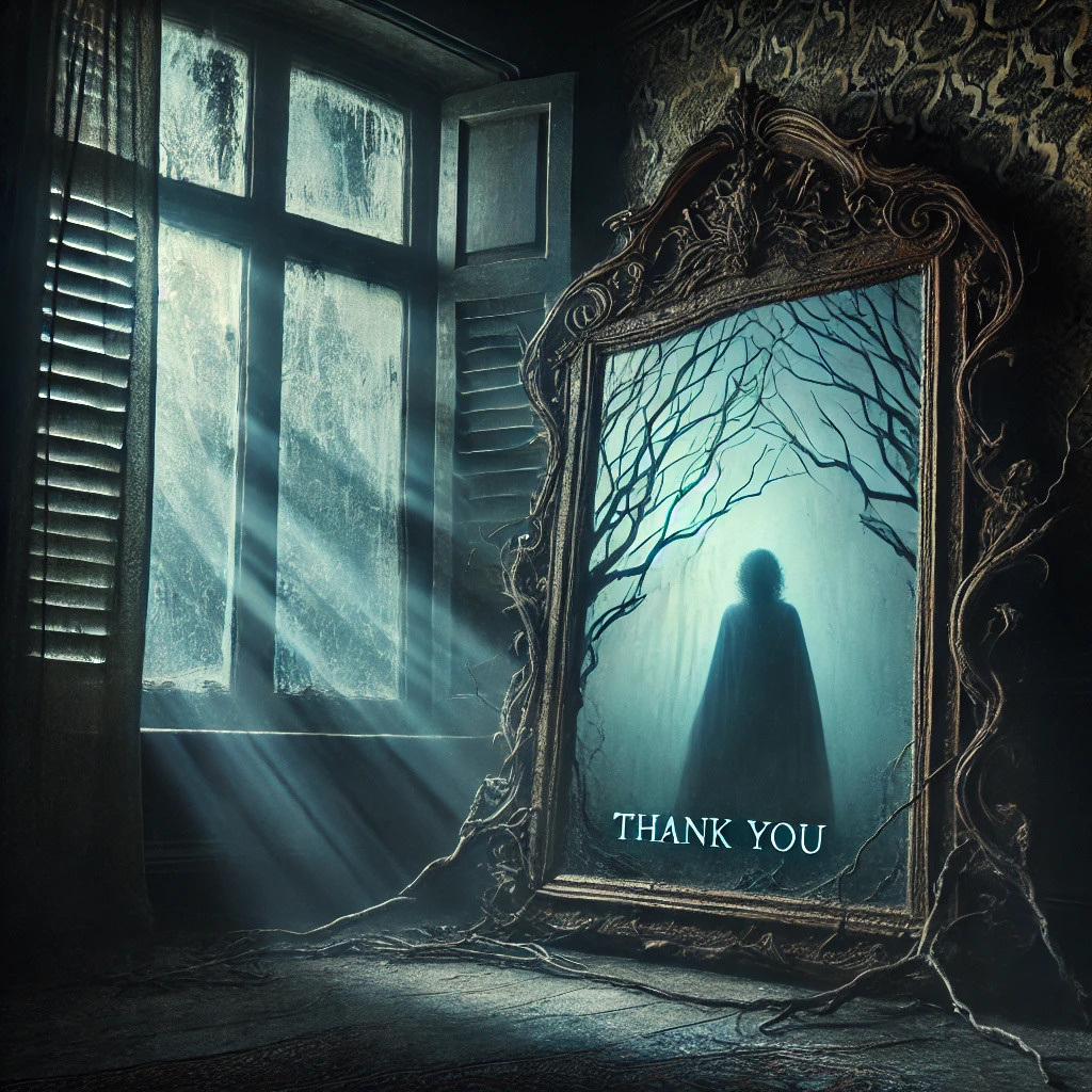 Когда он открыл глаза, его окружал свет. Лес исчез, и он снова оказался в хижине. На стене всё так же висело зеркало. Только теперь оно было покрыто трещинами. В центре появилась надпись, выцарапанная чем-то острым: