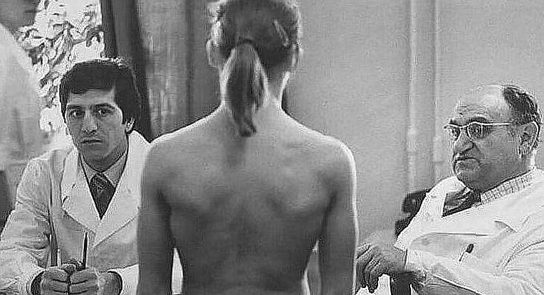 Спортсменка на медосмотре , фото Анатолий Морковкин, 1980–е. Погрузись в эпоху прошлого вместе с нами! «-Нуууу,тут думаю 1 разряд... - Голубчик,ну какой же первый,посмотрите внимательно-уверенно 2». &&&&& «Правосторонний сколиоз в грудном отделе позвоночника». &&&&& «Вон тот брюнет с шевелюрой сделал такие испуганные глаза, как будто первый раз в жизни голую бабу увидел». &&&&& «Аль Пачино что-то напрягся».