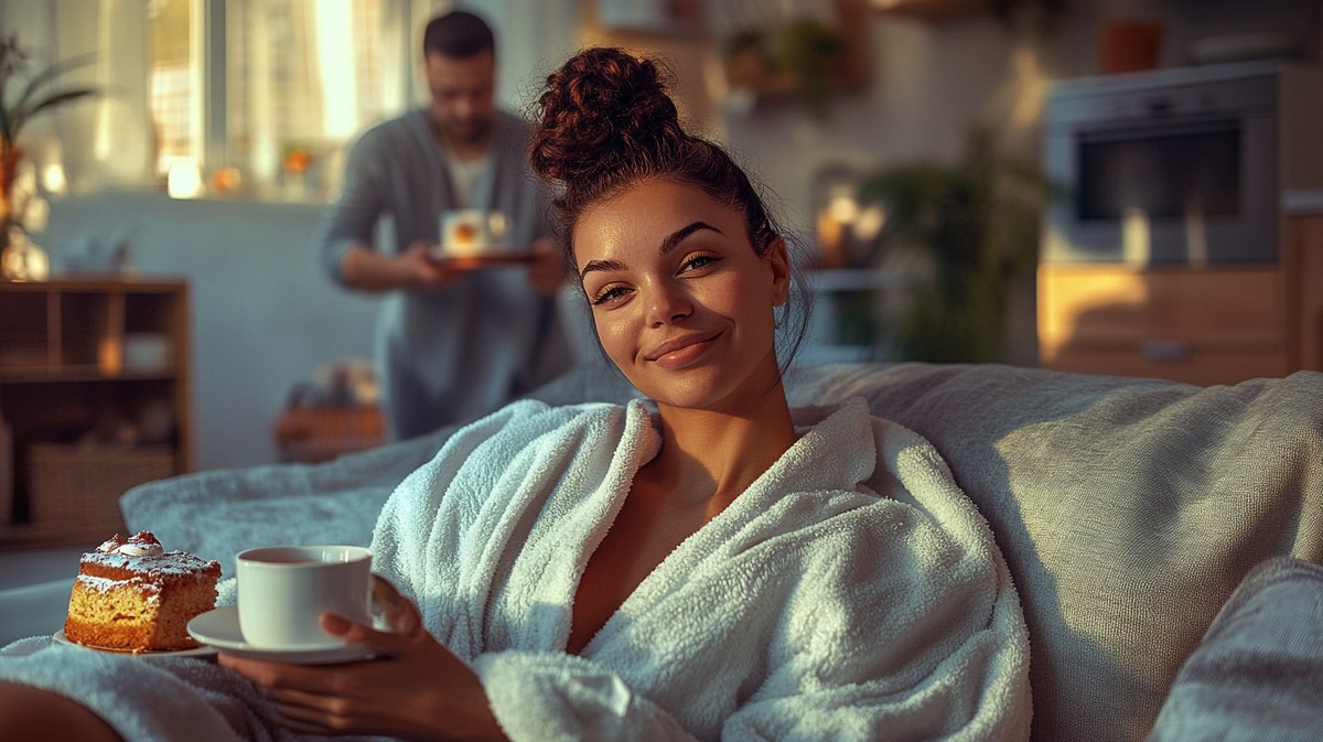 Ещё мужчина обязан давать женщине уверенность. Не ту уверенность, когда ты каждое утро разглядываешь себя в зеркале и думаешь: "Ну ничего, нормально, живая ещё". А ту самую, что когда он рядом, тебе не надо притворяться кем-то другим. Когда он говорит: "Да ты красавица, даже с этой пучкой на голове и в халате с котиками" — и ты вдруг начинаешь верить, что красота действительно в глазах смотрящего, а не в количестве средств для укладки.