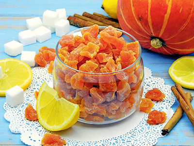 Десерт называли сухим вареньем, изделиями «балабухи», а сегодня — цукатами. Откуда родом сладость и чем она полезна — в материале корреспондента агентства «Минск-Новости». Еще древние китайцы и жители Месопотамии знали: мед и пальмовый сироп способны законсервировать погруженные в них фрукты. Однако первооткрывателями засахаривания считаются арабы. Они подавали на банкетах сушеную кожуру цитрусовых и цветы в сиропах. Сначала купцы привезли цукаты в Италию и Грецию. Позже их распробовали во Франции. На наши земли лакомство попало из Киева. Называли его киевским сухим вареньем. Впервые эту сладость доставили в 1386 году на свадебный пир великого князя литовского Ягайло и польской королевны Ядвиги. По вкусу десерт пришелся и российской императрице Екатерине II. В 1777-м она даже издала указ, согласно которому сухое варенье из вишен, слив, персиков, абрикосов, нектаринов, груш, чернослива должны были ежегодно поставлять ко двору. Каждую осень из Киева в Петербург отправляли дилижансы с ящи