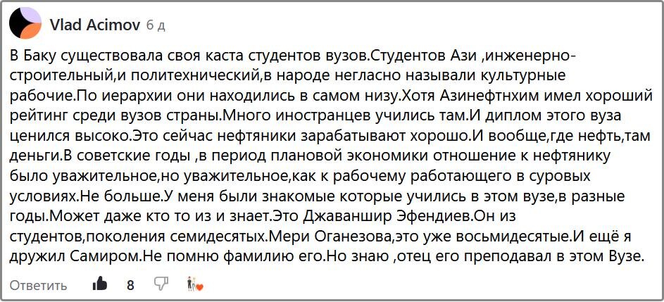 Я этому моменту уделил так много внимания, потому-что (как мне кажется) не все умеют разделять разные уровни престижа бакинских институтов времен СССР.