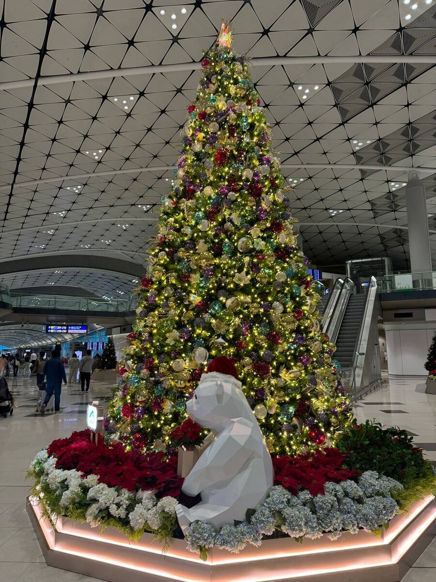 Аэропорт Гонконга реально большой: в нем до 500 выходов на посадку, внутри ходит поезд. Пока я сидела на стыковке в аэропорту, самолеты вылетали каждые 3-4 минуты. Всего 3 крыла, между которыми ходит быстрый поезд. Нужно закладывать время на этот момент. Елки к Рождеству установлены пока только в одном крыле, выглядит нарядно! Это большой международный хаб с четко выстроенными системами и комфортными условиями для пассажиров. Какие удобства есть в аэропорту Гонконга для пассажиров: До входа на таможенный контроль есть быстрый коридор для VIP-пассажиров, а также для тех, у кого до рейса осталось менее 30 минут. В аэропорту Дохи есть такие же быстрые проходы для опаздывающих. Из нюансов: в аэропорту Гонконга может быть прохладно несмотря на то, что за окном плюс 22 градуса. Я была в ноябре. Кроме толстовки берите с собой прямо куртку – и укутаться можно будет, и удобно устроиться во время полета. Иногда бывает грязновато вокруг, хотя постоянно ходят, убирают, это больше из-за бесконечн