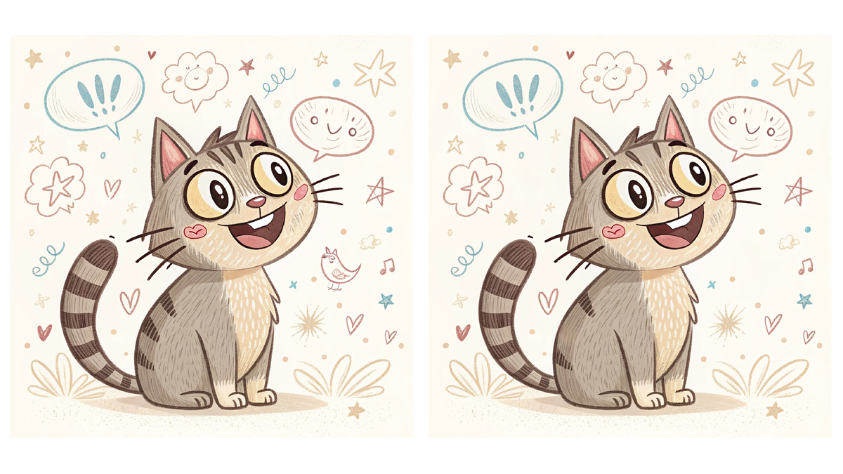 Задание 1 – Найдите отличия на картинке с очаровательным котиком: