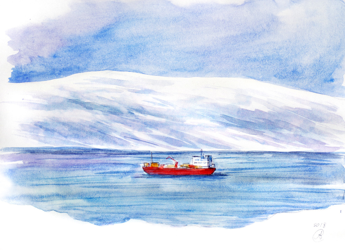 Отдышавшись от перелёта, на рассвете, мы пошли знакомиться с городом, начиная с сопки «Зелёный мыс». На её вершине парит над городом легендарный памятник защитникам Отечества в годы Второй Мировой войны. На огромном постаменте высится широкоплечий воин в плащ-палатке, мурманчане ласково называют его «Алёшей».