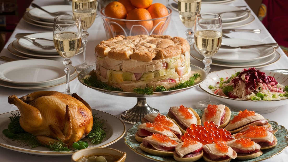 Варианты новогоднего стола для бедных, среднего класса и богачей.