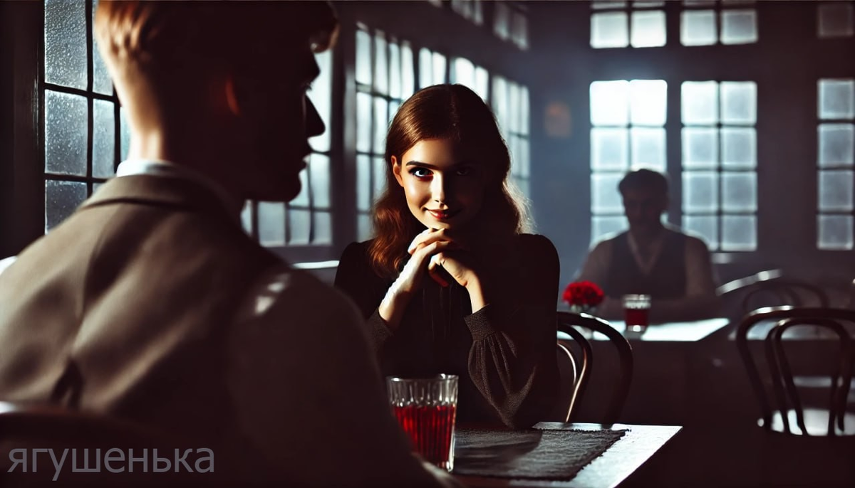 Дверь раскрылась, и цокот шпилек, разорвавший тишину кафешки, прозвучал как выстрелы из пулемёта. Елена Прекрасная подиумно прошествовала в помещении, поправив доселе припрятанную в сумочку блузку с провокационным вырезом. Она хищно улыбнулась ярко накрашенными губами и приземлилась за столик.