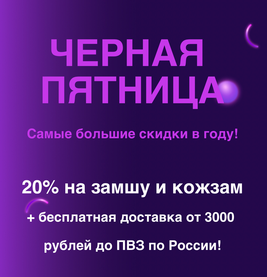 Самые большие скидки в году! -20% НА ЗАМШУ И КОЖЗАМ + БЕСПЛАТНАЯ ДОСТАВКА от 3000 рублей до ПВЗ по России! Цены указаны со скидкой✔️ ТОЛЬКО С 21.11.24 ПО 01.12.24 Не упустите свой шанс на выгодные покупки!