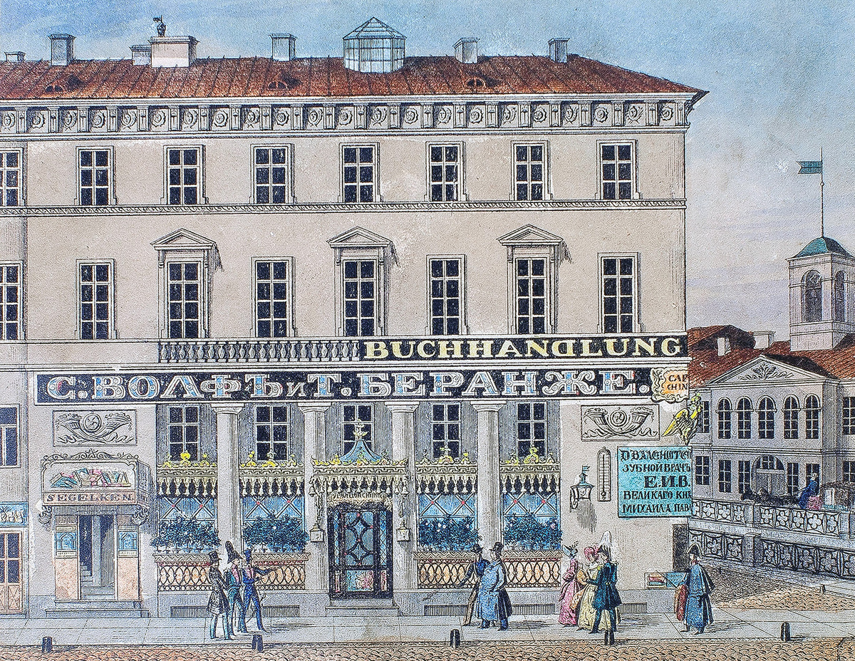 На набережной реки Мойки, прямо на углу с Невским проспектом, находилось одно из самых известных заведений Кофейня Вольфа и Беранже.