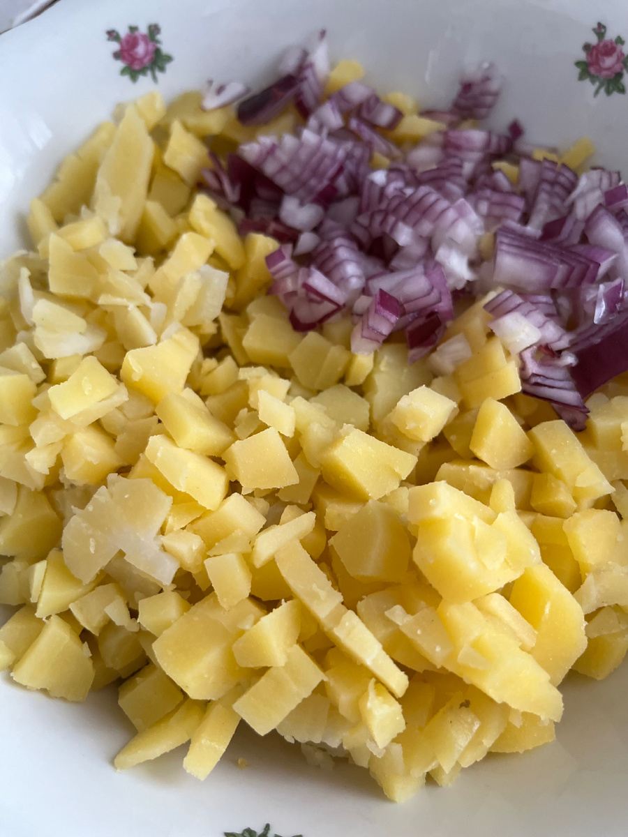 Винегрет- это салат из вареных овощей. Нам потребуется: свекла - 2 шт. картофель - 4 шт. морковь- 1 шт. лук репчатый - 1 шт. горошек консервированный - 100 грамм огурец соленый - 1 шт. растительное масло для заправки Приготовление: Все овощи моем и отвариваем до готовности. Остужаем, чистим и нарезаем кубиками картофель, соленый огурец. Шинкуем лук, натираем на терке свеклу и морковь. Все перемешиваем, солить не надо, т.к. мы добавили соленый огурец и заправляем растительным маслом. Приятного аппетита!