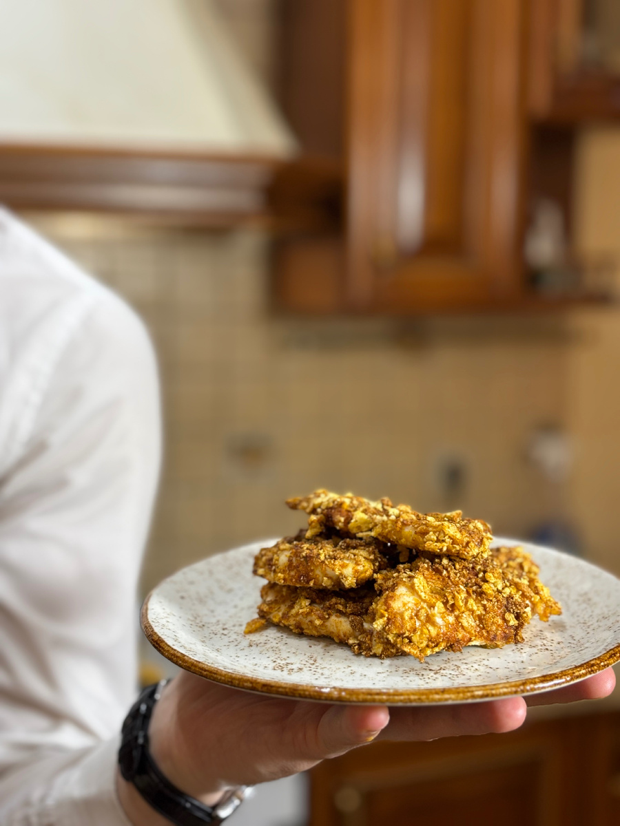 Простой, пошаговый рецепт Подготовьте ингредиенты: ✅филе курицы 500 гр ✅кукурузные хлопья 150 гр ✅яйцо 2 шт ✅приправа для курицы 15 гр ✅паприка 10 гр Шаг 1 Измельчите хлопья в крупную крошку руками, стаканом или толкушкой Шаг 2 Смешайте приправы с хлопьями Шаг 3 Нарежьте курицу ломтиками толщиной 5-7 мм Шаг 4 Яйца размешайте в отдельной тарелке Шаг 5 Панируем курицу, опускаем ее в яйцо, затем в хлопья и выкладываем на противень застеленный бумагой для запекания Шаг 6 Запекаем в духовке при 160 градусах 20 минут #еда #foodблогер #рецепты #наггетсы #ппрецепты