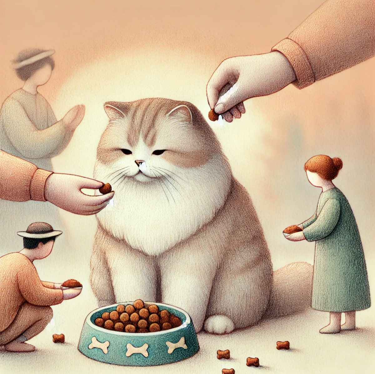 - Никто не устанавливает строгих правил вроде "не подходи, пока я не закончу". Это ускоряет процесс, но есть риск, что кто-то случайно перекормит котика или положит не тот корм, потому что все работают одновременно.