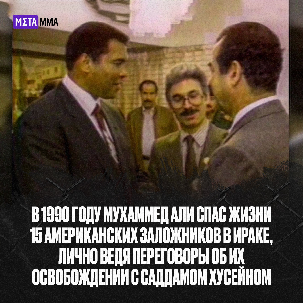 В 1990 году Мухаммед Али в очередной раз доказал, что его величие простирается далеко за пределы бокса. В разгар напряженности в отношениях между Соединенными Штатами и Ираком Саддам Хусейн захватил в заложники сотни иностранных граждан, используя их в качестве разменной монеты против возможных военных действий. Среди них было 15 американцев, которые опасались, что могут никогда не вернуться домой. Али, несмотря на то, что он боролся с изнурительными последствиями болезни Паркинсона, принял смелое решение отправиться в Ирак, чтобы лично провести переговоры об их освобождении. Не имея официальных полномочий и руководствуясь исключительно своими моральными принципами, Али встретился непосредственно с Саддамом Хусейном. Используя свое легендарное обаяние, харизму и непоколебимую решимость, он взывал к человечности Хусейна, выступая за освобождение заложников. После нескольких недель упорных дипломатических усилий Али добился успеха там, где другие потерпели неудачу. Он добился освобождени